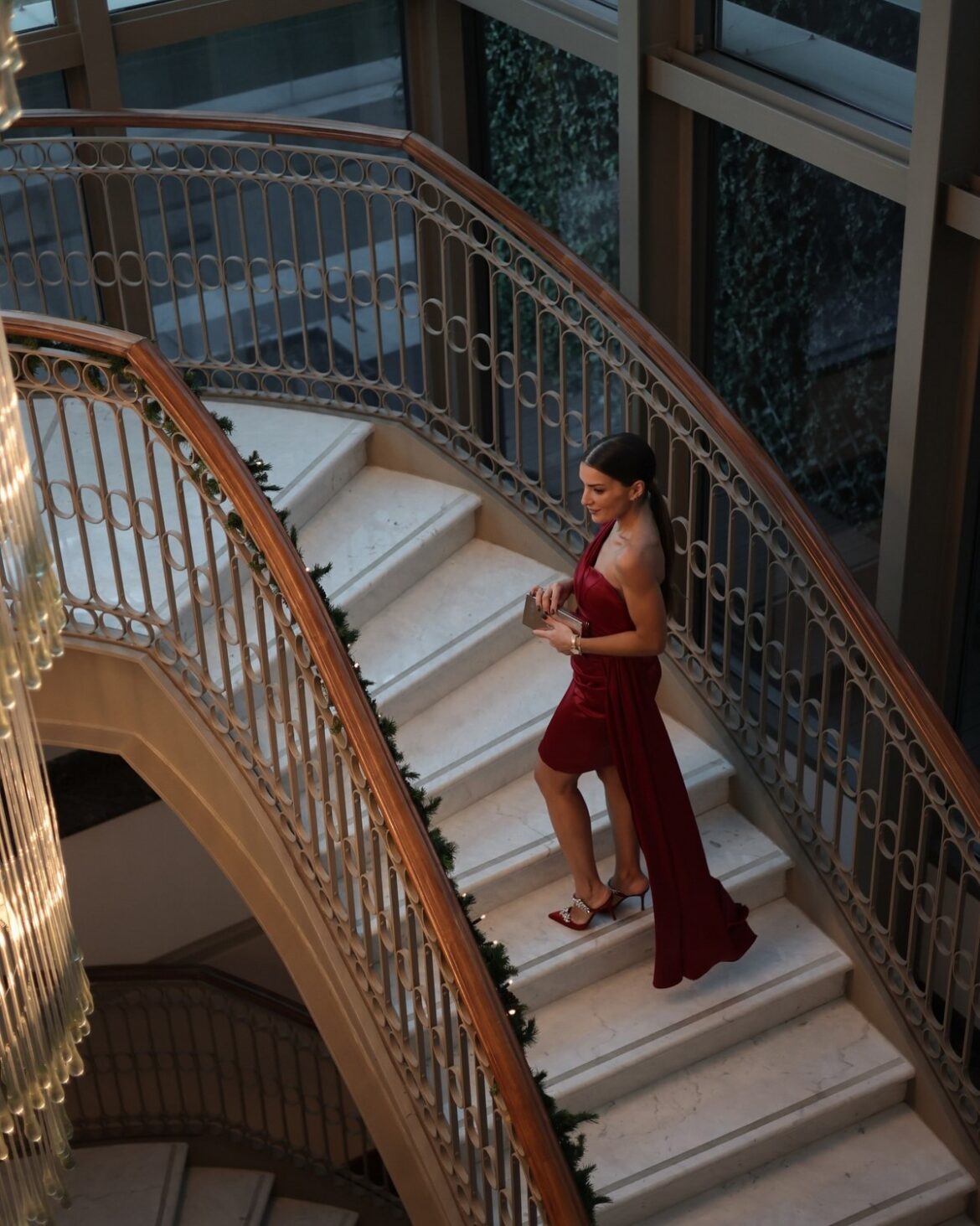 Кейпы добавляют в новогодний образ королевскую грацию. Они могут быть частью самого платья или отдельным элементом. Модели с кейпами особенно эффектны в длине миди или макси, выполненные из струящихся тканей с блеском. В сочетании с лаконичными аксессуарами кейп превращает платье в арт-объект.