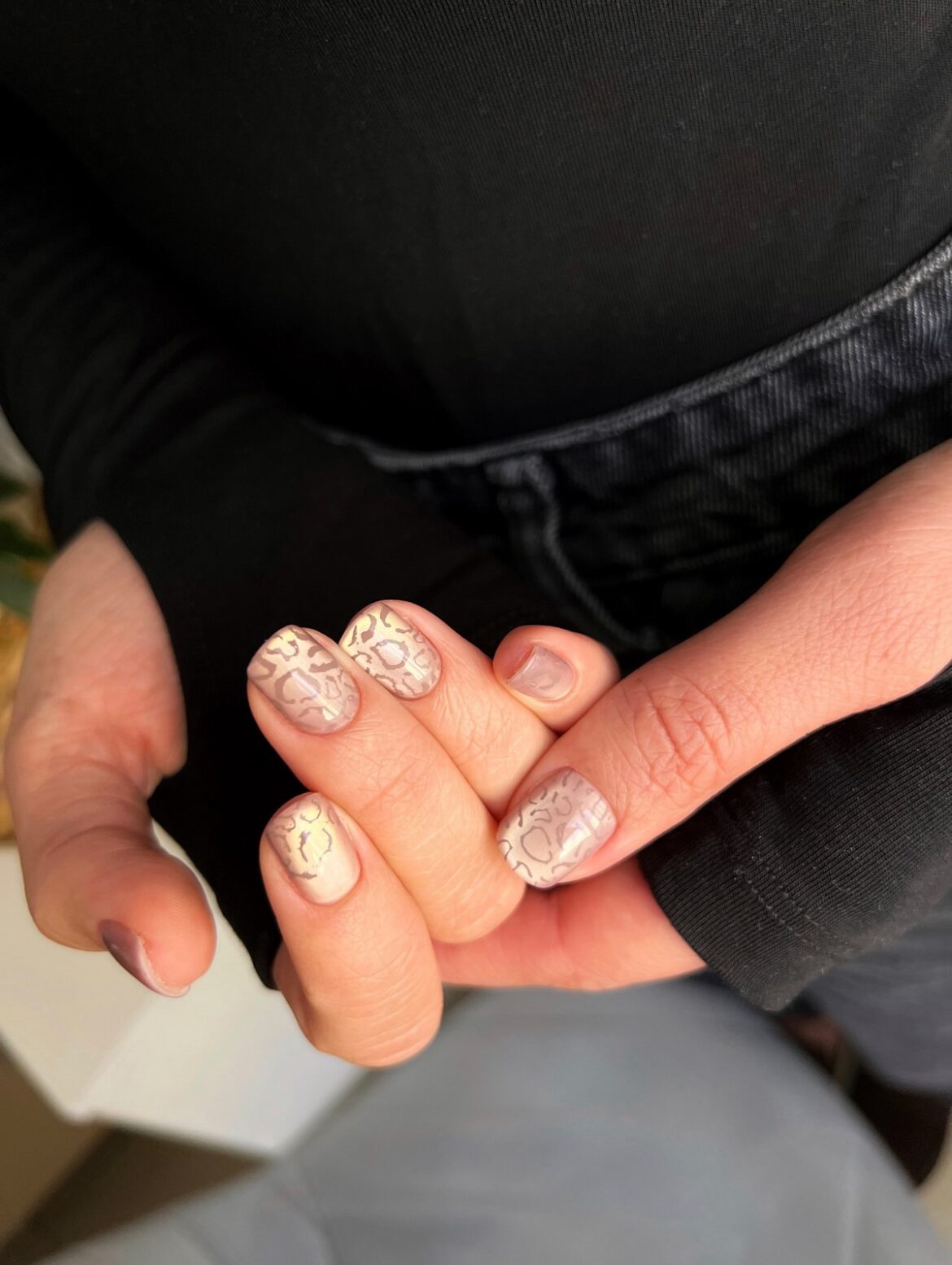 Главный секрет — объединяющая цветовая гамма: все элементы должны быть выдержаны в одной палитре, например, кофейной или сливочной. Такой подход делает маникюр выразительным, но не перегруженным.