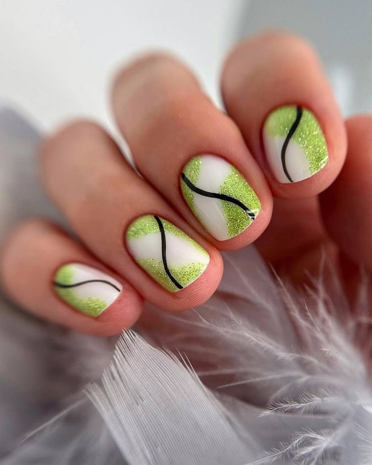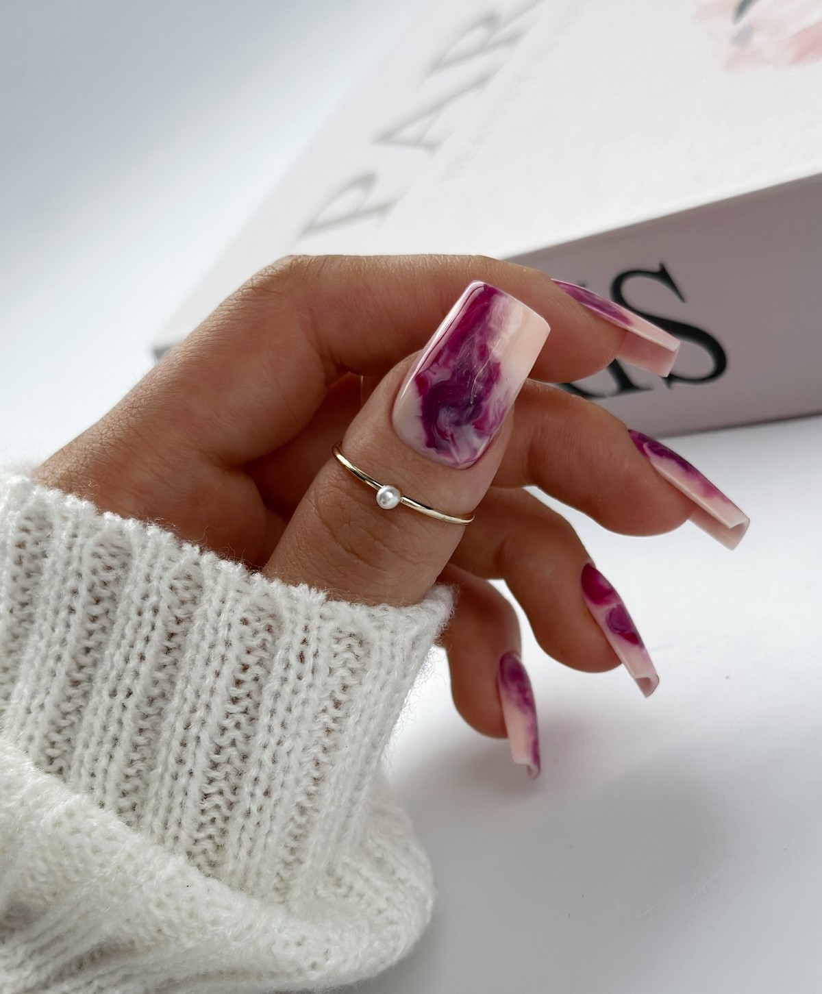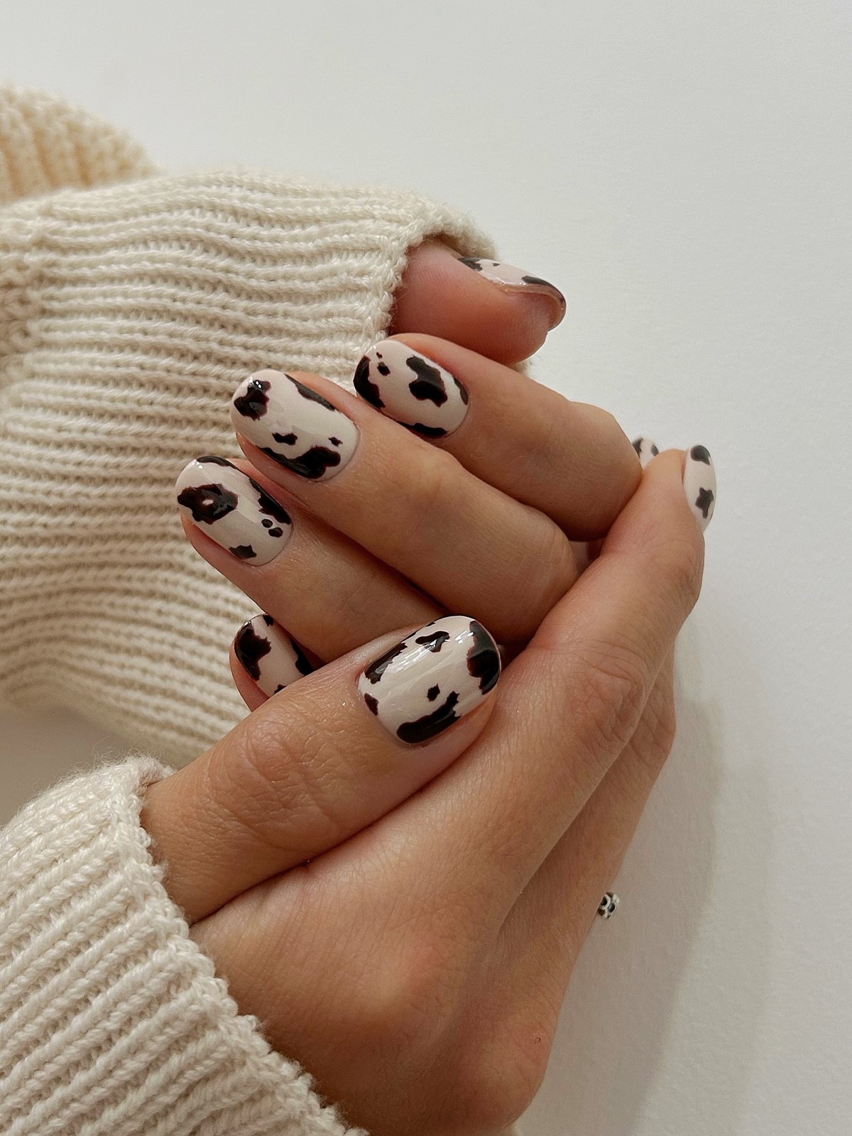 Самые актуальные оттенки для абстрактного дизайна — приглушенный терракотовый, сливовый, хаки, серо-голубой и белый. Такой маникюр идеально дополняет осенние пальто, свитеры и кашемировые пледы, добавляя в образ нотку артистичности.