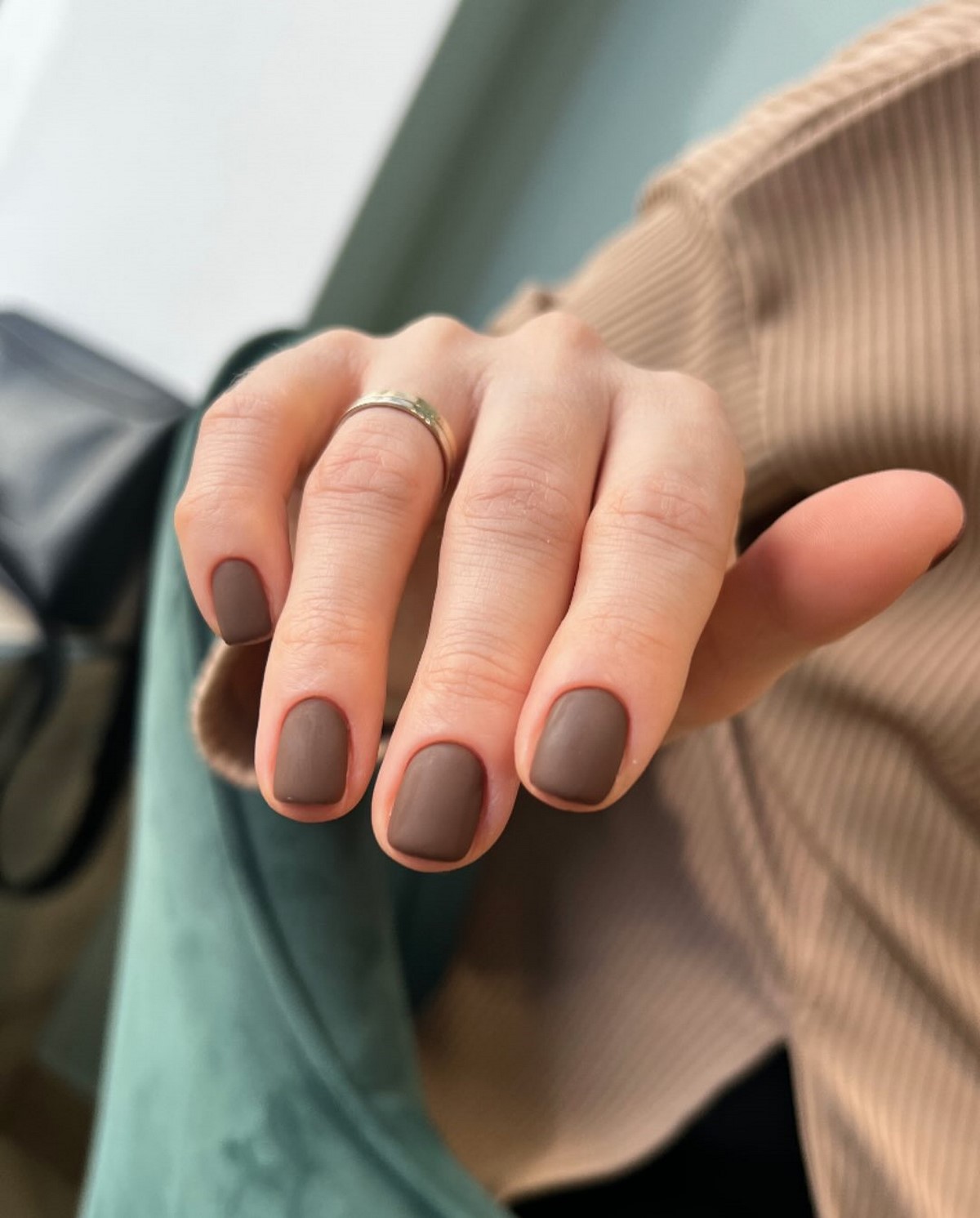 Матовые покрытия особенно удачно подчеркивают короткую или среднюю длину ногтей, создавая чистый и элегантный акцент на руках.